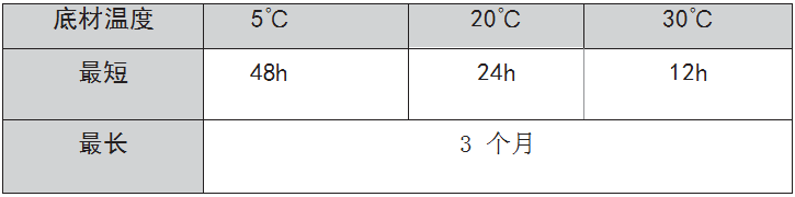 干燥時間 23±2℃ 表干≤ 30min 實干≤ 24h 完全固化 7d 理論用量 168g/m2